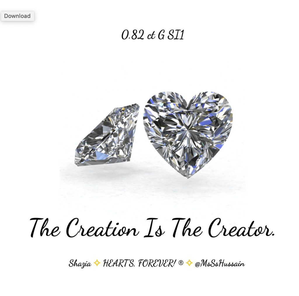 0.82ct G SI1 Posted byShazia!December 16, 2019Posted inARTS AND POETRY, HEART'S, FOREVER!, QUOTES, Soul The Creation Is The Creator. #ShaziBlog #Quote Tweet Image Source Share this: Click to share on X (Opens in new window) X Click to share on Facebook (Opens in new window) Facebook Like Loading... Related