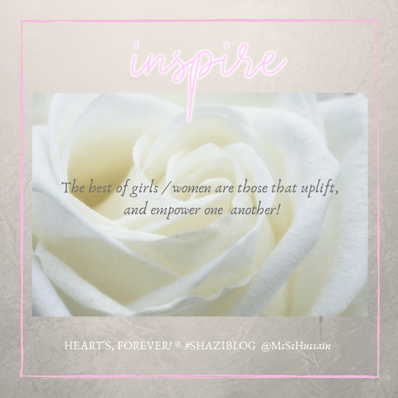 INSPIRE! Posted byShazia!January 5, 2020November 9, 2023Posted inCreativity, HEART'S, FOREVER!, LOVE, QUOTES, Social Innovation, Soul, Spanish America, SpiritualTags:FredCuellar, LOVE, LoveandHonor, MarysShrine, ShaziaHussain, ThankyouForYourService INSPIRE! JANUARY 3RD, 2020. The best of girls / women are those that uplift, and empower one another! #SHAZIBLOG #QUOTE Tweet Share this: Click to share on X (Opens in new window) X Click to share on Facebook (Opens in new window) Facebook Like Loading... Related