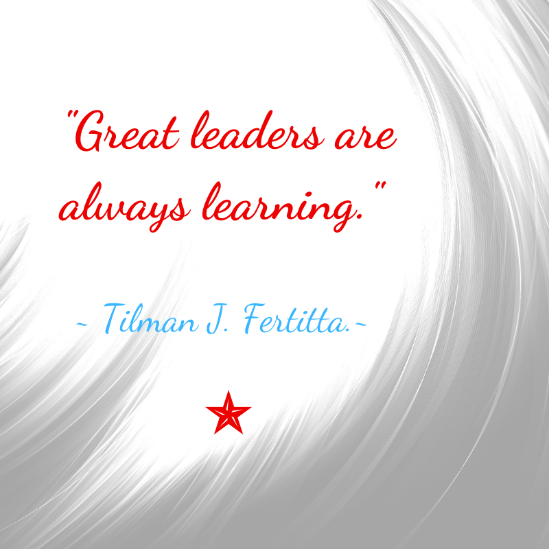 “Great Leaders are always learning.” (Fertitta, 127). #TilmanFertitta #SHUTUPANDLISTEN #book #Tilmanism #quote #shaziblog