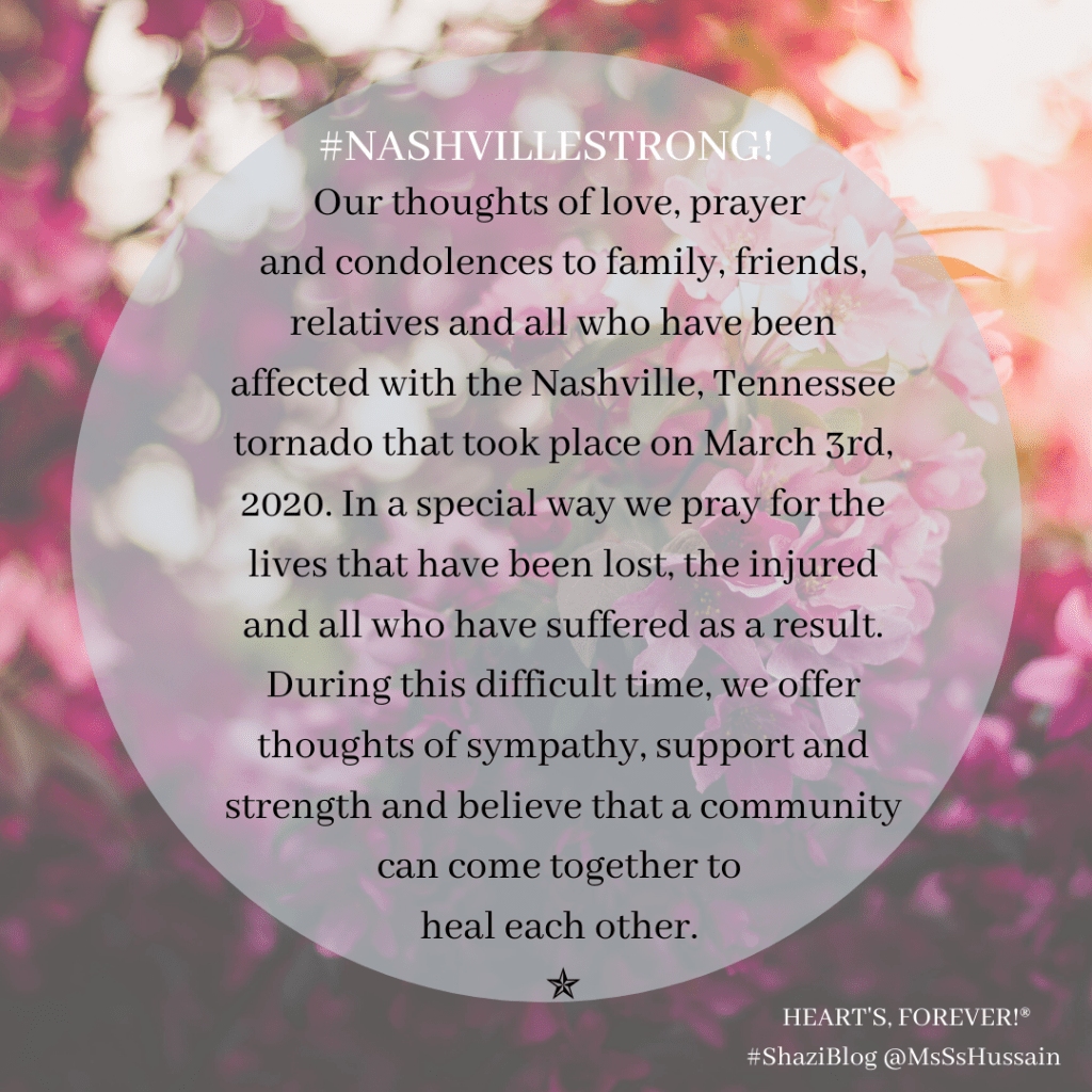 Our thoughts of love, prayer and condolences to family, friends, relatives and all who have been affected with the Nashville, Tennessee tornado that took place on March 3rd, 2020. In a special way we pray for the lives that have been lost, the injured and all who have suffered as a result. During this difficult time, we offer thoughts of sympathy, support and strength and believe that a community can come together to heal each other. ✯