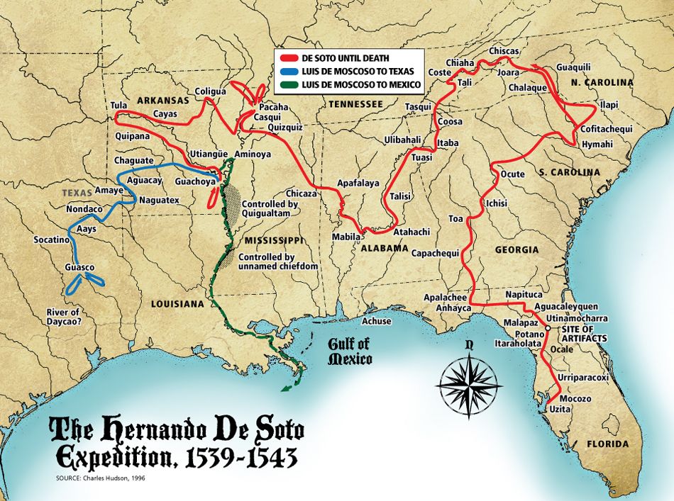 Hernando de Soto: With regards to the flags: there are associations to history suggesting slave-holding states, and also considered to symbolize regional pride and heritage. However, prior to the arrival of slavery within America – there were also the explorations of America. Which came from the Spanish expeditions. Columbus who was an Italian was funded by the Crown of Castile, Spain. With the success of his missions, other explorers were further inspired. Hernando de Soto later discovered states which are now called: Florida, Georgia, Carolina, Tennessee, Alabama, Mississippi, Arkansas, Oklahoma, Louisiana, and Texas. These sates were discovered between 1539-1542.