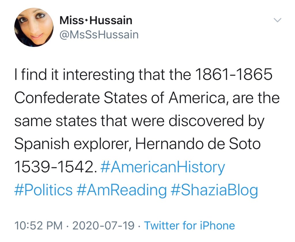 between the Spanish discovery of the states, and the beginning of the Confederacy, there is a gap of 319 years. #ShaziaBlog #Quote #AmericanHistory