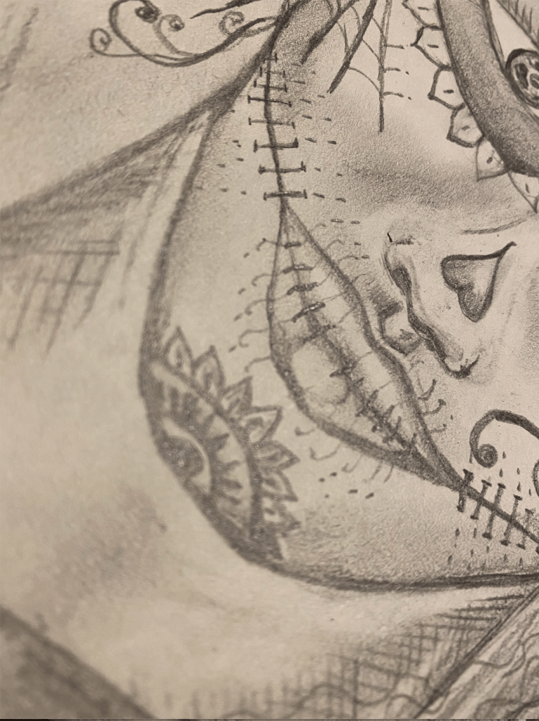 Sugar Skulls are utilized often for the purposes of celebration and commemoration during the Day of the Dead / Dia De Los Muertos. They were also symbolic of traditions and customs during the pre-Columbian era as a representation of re-birth, as well as for the Roman Catholic faith of All Souls Day. These images are of a Sugar Skull sketch, created with pencil on paper.