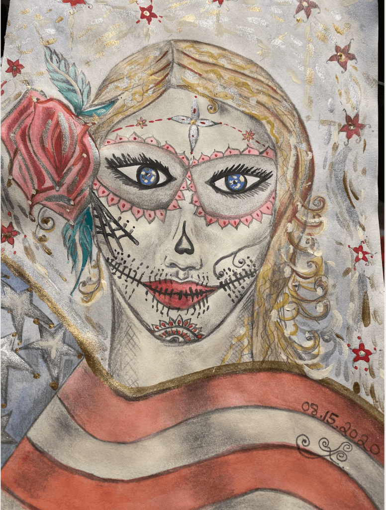 SUGAR SKULL II! 08. 15. 2020 | WATER-COLOR ON PENCIL SKETCH AND PAPER.