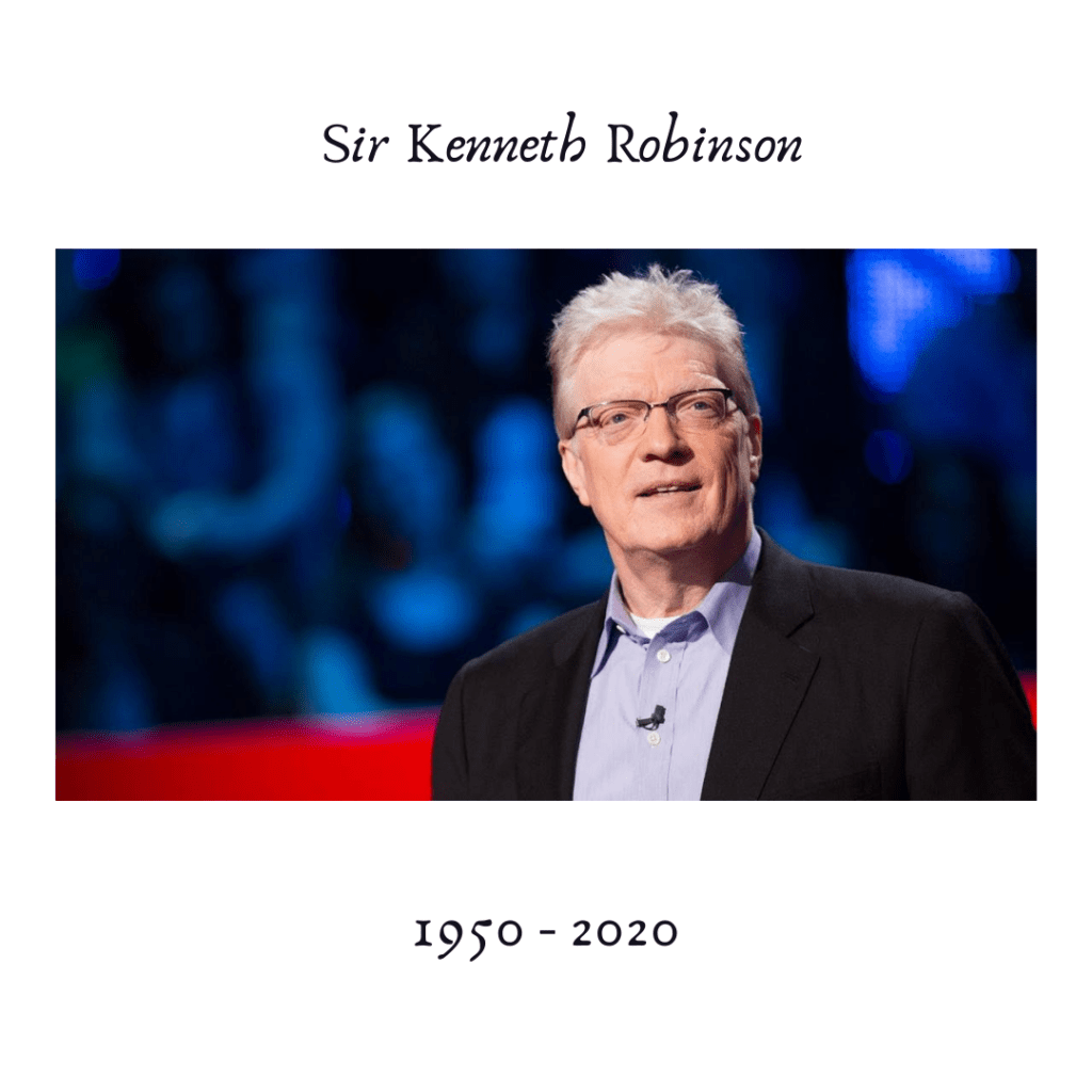 Our thoughts of love, prayer and condolences to family, friends, relatives, loved ones and all who mourn the loss of Sir Kenneth Robinson. Sir Ken Robinson passed away on August 21st 2020, after a battle with cancer. His life’s loss will be missed. I truly appreciated his life long strife to advocate and purport the benefits of the creative mind. The imagination. Especially within the realms of the educational sector. He was a few of the many educationalist who desired to make a difference, reduce the stigma’s associated with mental health, creativity, arts and the imagination. I am sure that his loss will be felt within the education sector, and the many who would turn to Robinson for expertise and advice.