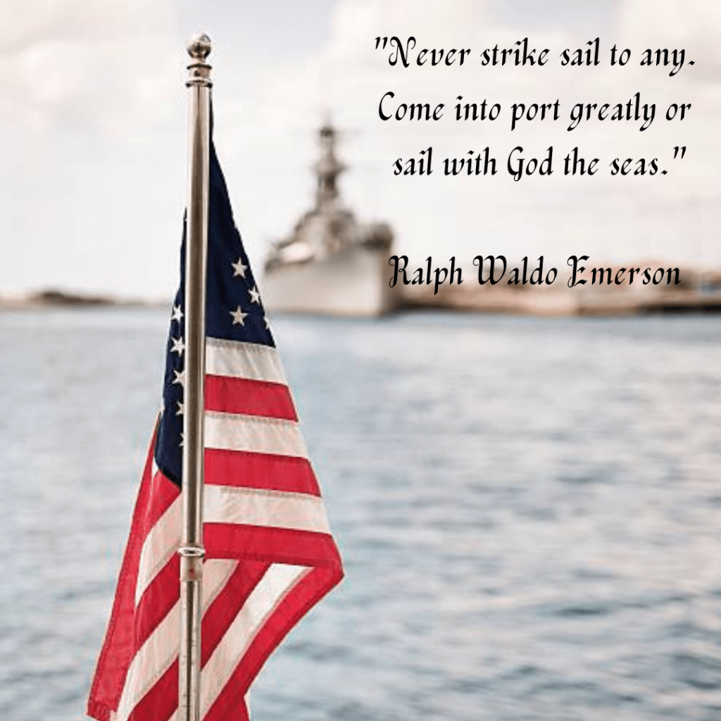 “Never strike sail to any. Come into port greatly or sail with God the seas.” Ralph Waldo Emerson #Quote #ShaziaBlog #REDFridays #ThankyouForYourService