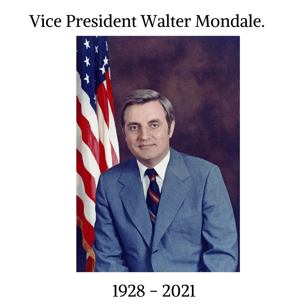 Our thoughts of love, prayer and condolences to family, friends relatives, loved ones, former colleagues and all who mourn the loss of former Vice-President Walter Mondale. Mondale was the 42nd VP to President Jimmy Carter. Thank you for your service to a grateful nation.
