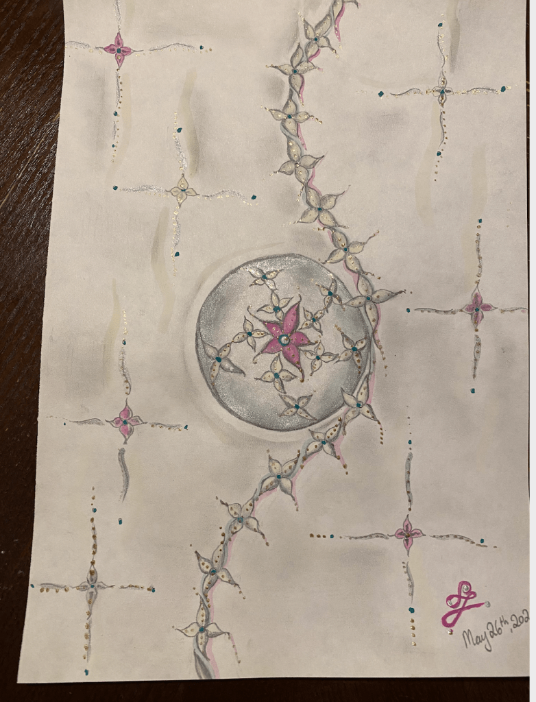 A Life Kiss is a simple abstract pencil sketch on paper with watercolor and metallics, which was originally inspired from a quote that I wrote and shared about the idea of life within. We can think about this quote through the concept of actual life that forms within us and also the creative seeds within that come to life in tangible form. A Life Kiss! With love and Kindness!