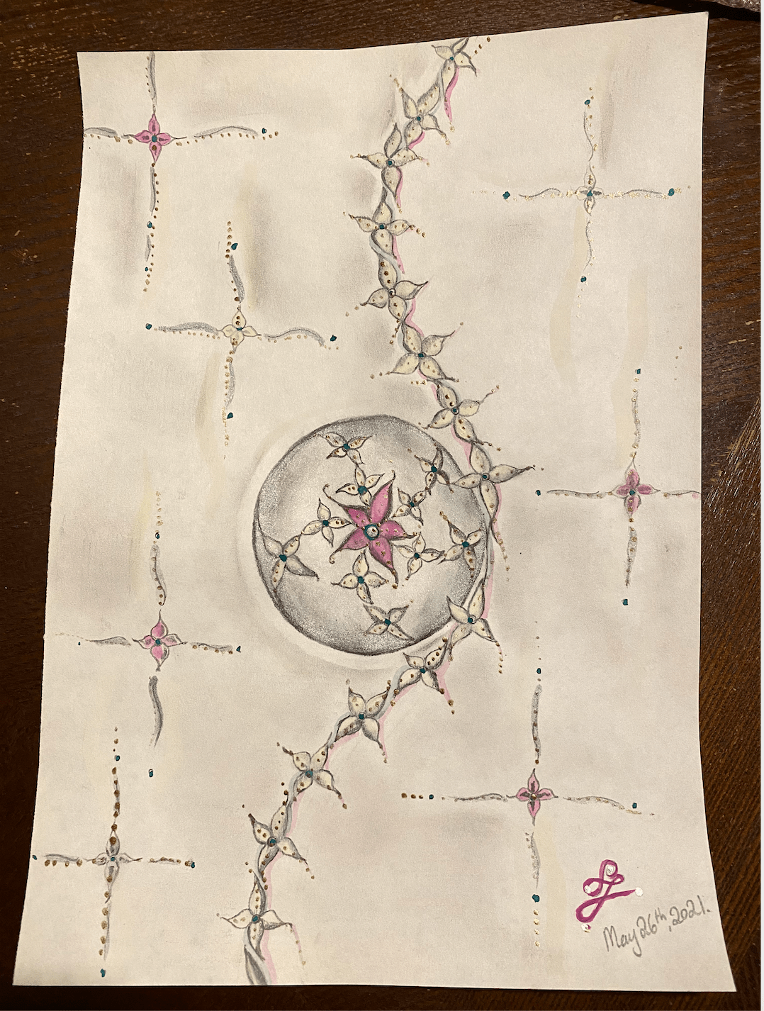 A Life Kiss is a simple abstract pencil sketch on paper with watercolor and metallics, which was originally inspired from a quote that I wrote and shared about the idea of life within. We can think about this quote through the concept of actual life that forms within us and also the creative seeds within that come to life in tangible form. A Life Kiss! With love and Kindness!