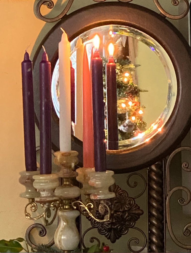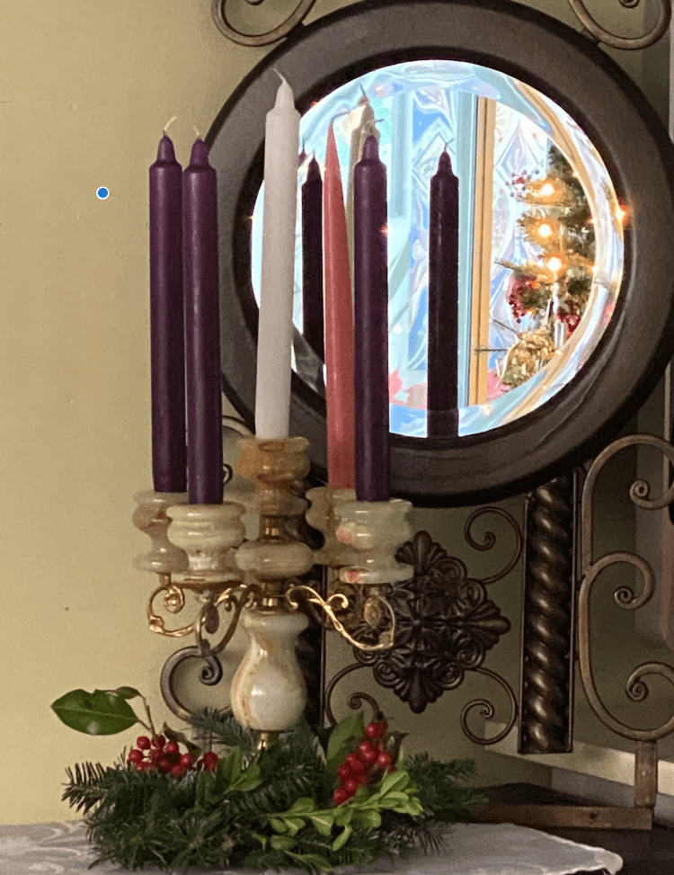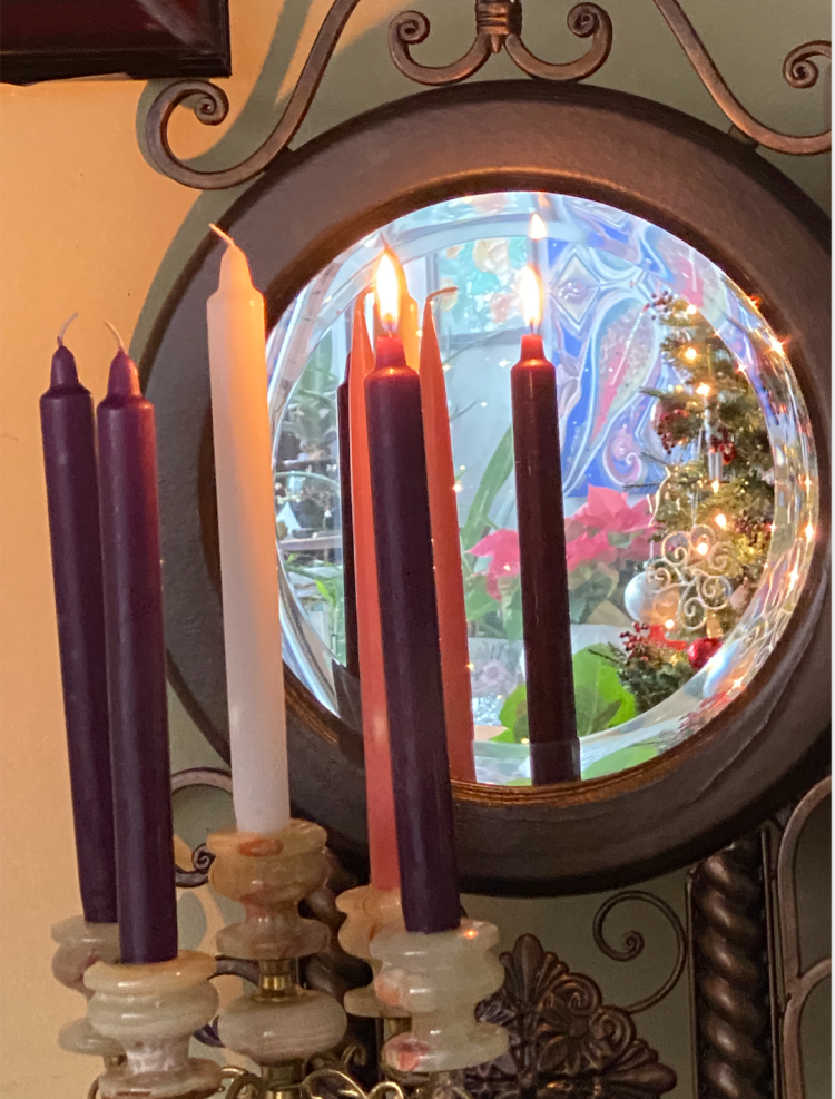 This year on November 28th the 2021 the Advent season begins with the traditional Advent wreath, that consists of evergreens / greenery and 4 or 5 candles. Each Sunday a candle is lit for the joyous preparation and birth of Jesus Christ – The Messiah. The advent wreath is especially observed within the Catholic Christian faith. Last year 2021 was the first year that I decided to take part in this tradition, where I loved to decorate our marble candle-stick holder that I have kept for almost 20 years. As this time of year also marks a beginning and a closure of 2021, once again I would love to take-part in this tradition with you. I truly feel honored and grateful to be present for services that commemorate and contain joy and the teachings of this wondrous time of year. Below are some image of our advent wreath candle that I took this morning. Welcome and please enjoy with us!!! Thank you.