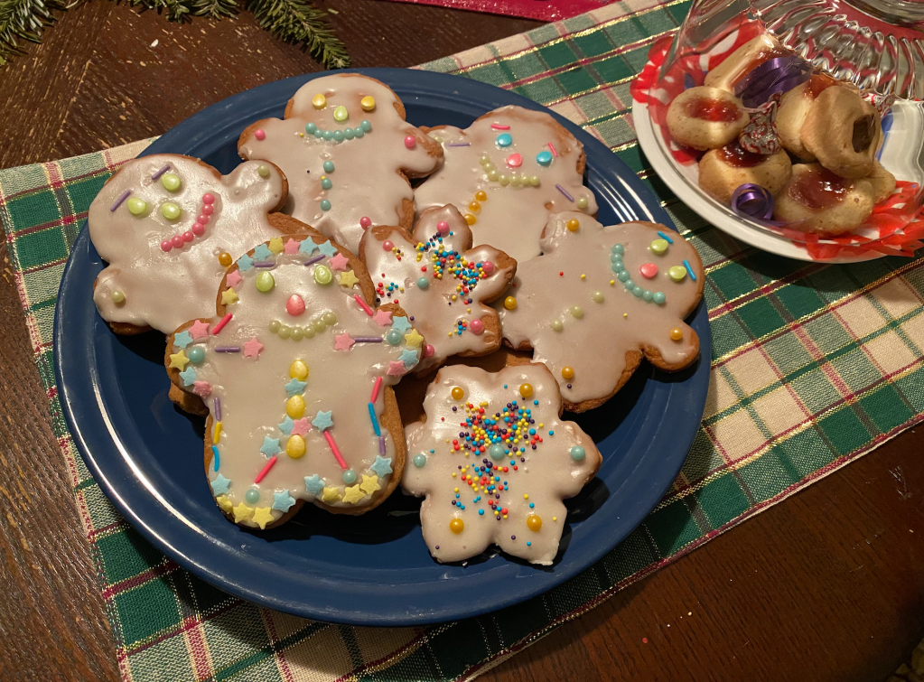 Please enjoy my Christmas baking. I feel blessed and grateful that I have been able to bake for Christmas 2021! This was my first year for baking Gingerbread cookies. I decided to make the shapes as Gingerbread men, snowflakes, an angel and a peace dove. I love our classic recipe of American Thumbprints, that I coated with almonds, simple sugar cookies and biscotti that I baked as the time advent started. These cookies are simple recipes, that are also cost-efficient depending upon the time that one has to bake. They are beautiful, creative and delicious. And of-course it is always nice to improve and have some help for my gingerbread decorating skills. Lots of love and yummy hugs!!!