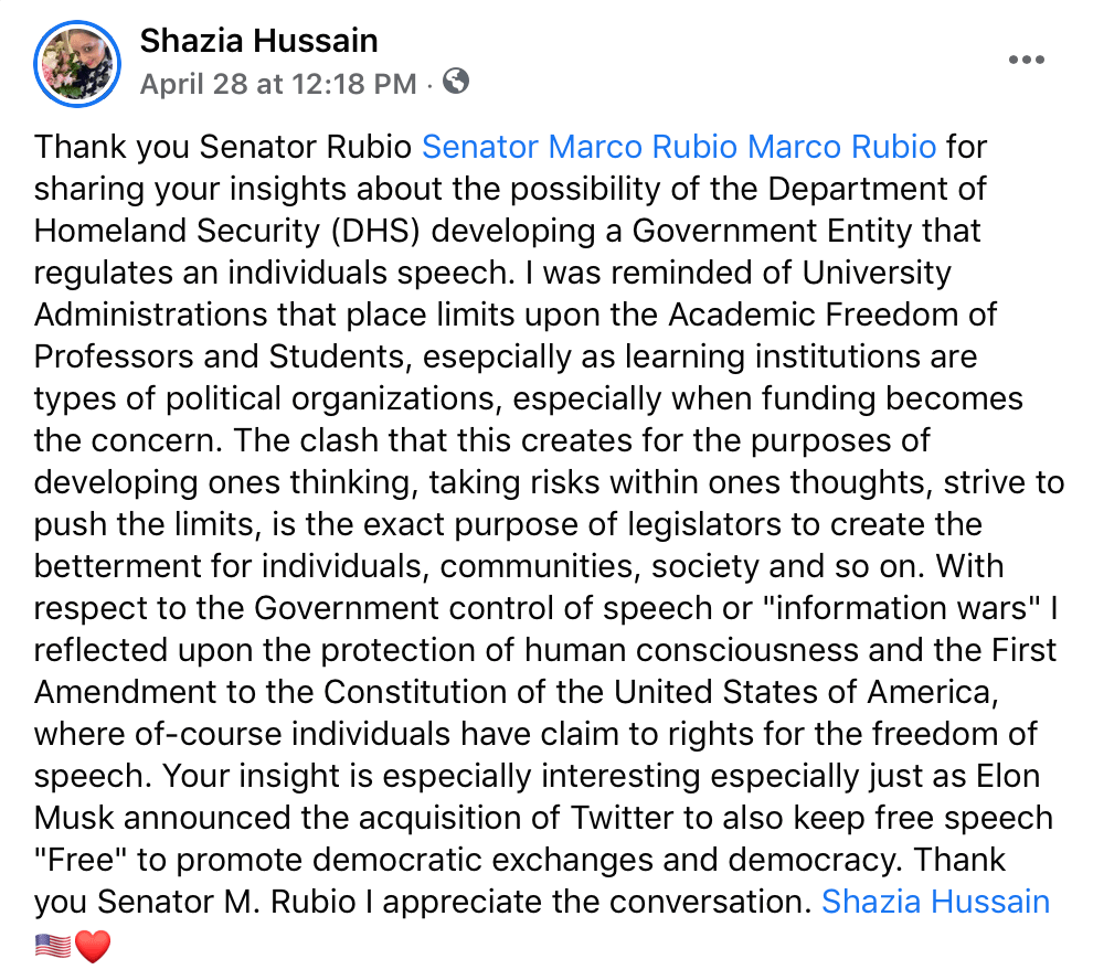 - Twitter Link and handle .@MarcoRubio .@MsSsHussain