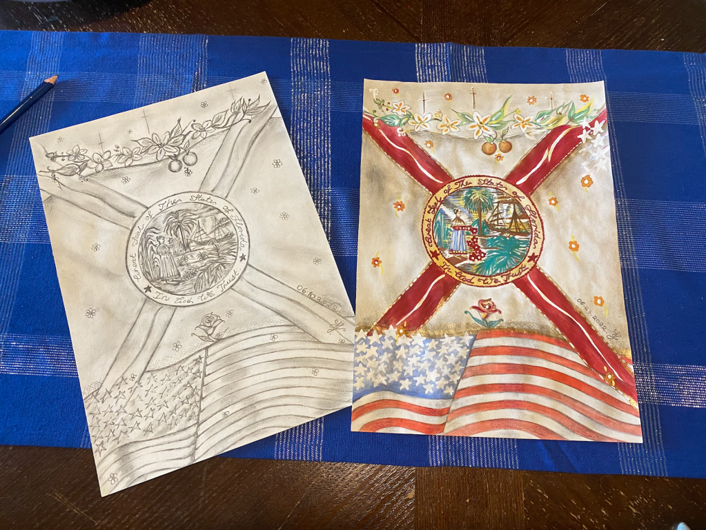 06.23.2022. THE GREAT SEAL OF FLORIDA II! PENCIL SKETCH WITH WATER COLORS AND METALLICS! ππ