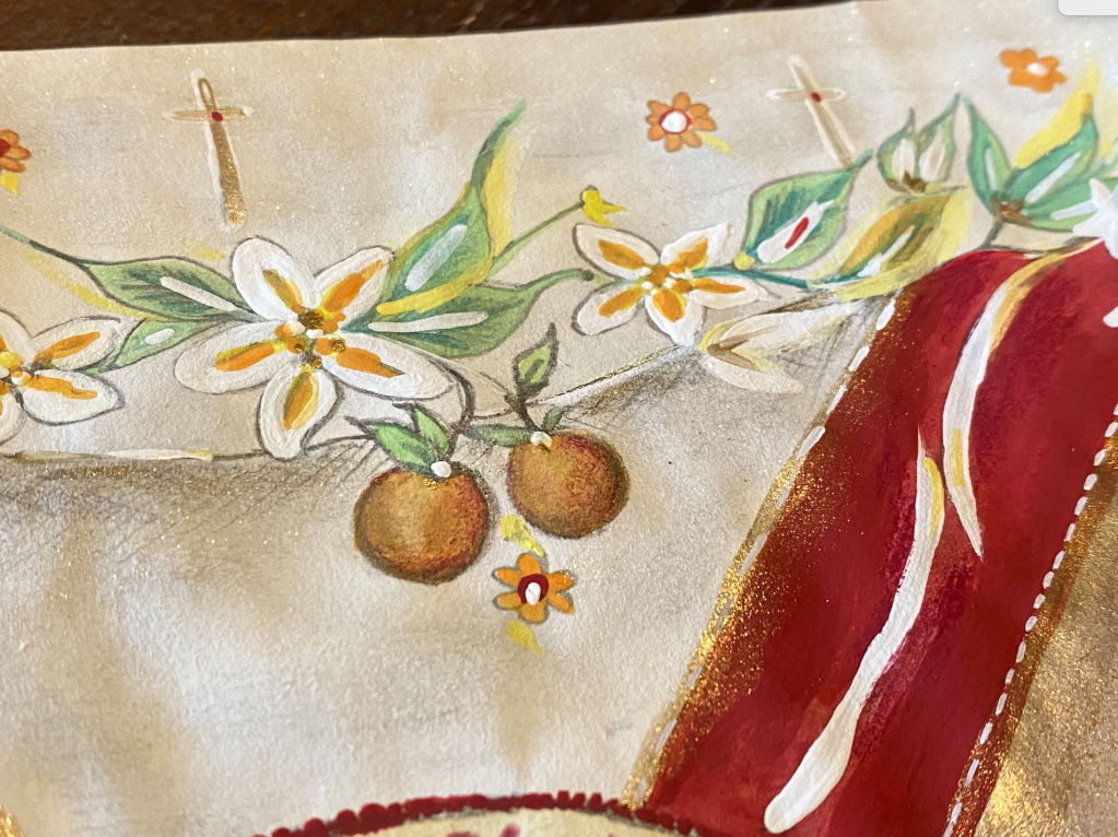 This style is a reoccuring theme within my sketch collections, that are inspired from the artist Frida Kahlo’s Ex-Voto painting style, that is translated from Spanish as Votive-Offering. In-particular the creations are small in size as our sketches, and intersect with religious or Catholic culture, such as the symbolism of the Christian Cross included within the design.