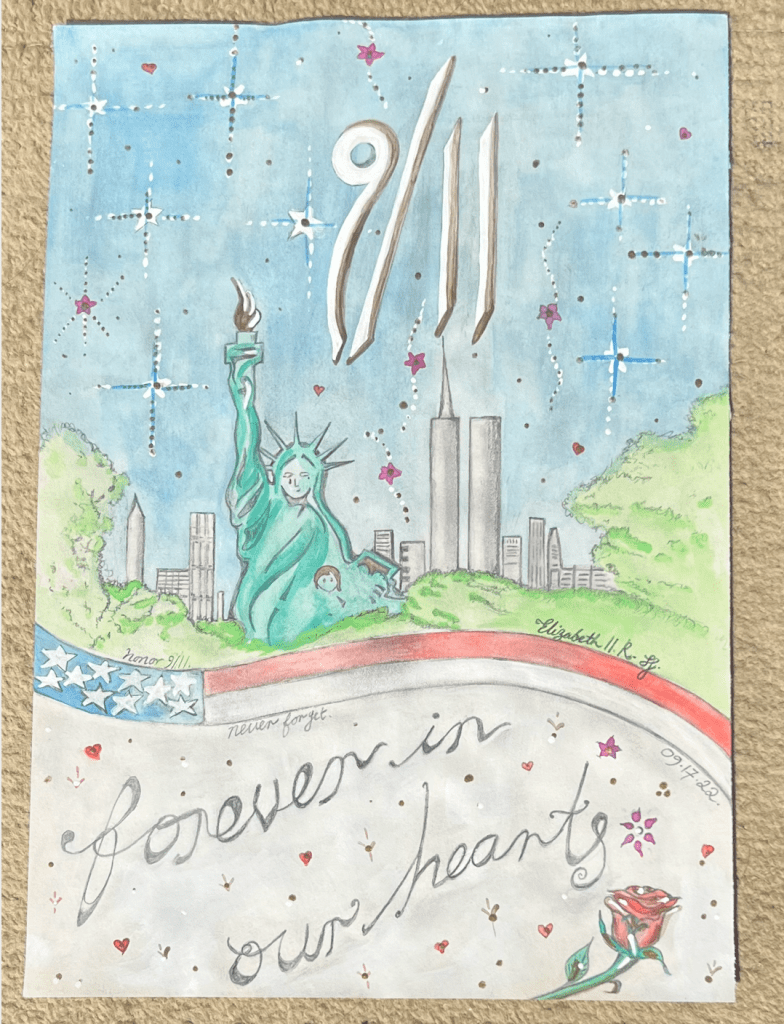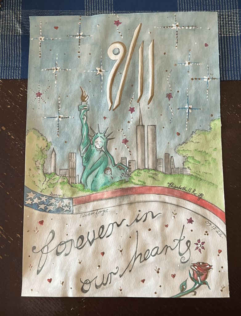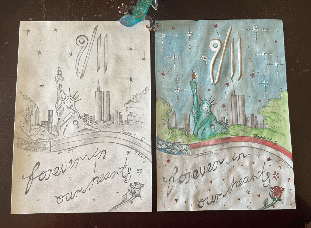 Any kind of artist will know the deeply personal connections of ones creativity, and the immense courage that it takes to share upon a public level, thus; as per previous blog posts / writing that convey the contexts for the art creation, here too I reiterate the very rupture of the heart, the delicate emotions from the solemn remembrance of 9/11. And also to appreciate Her Late Majesty Queen Elizabeth II’s solidarity with the USA during this time of tragedy.