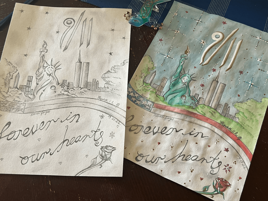 FOREVER IN OUR HEARTS! PENCIL SKETCH WITH WATERCOLOR AND METALLICS | 09.22.22.