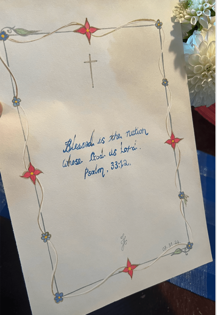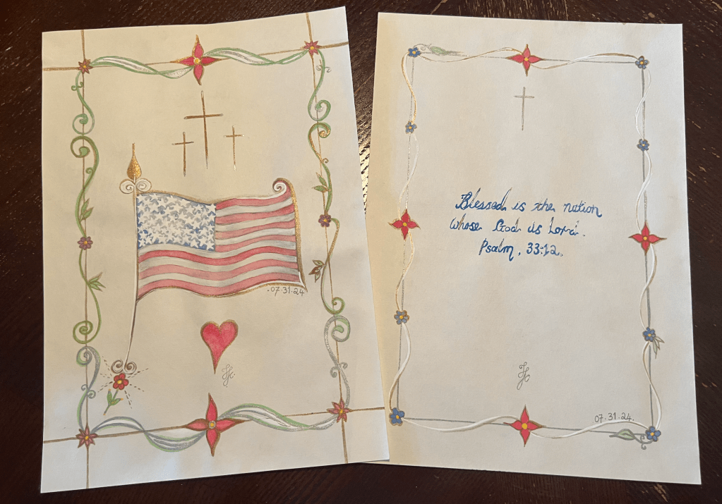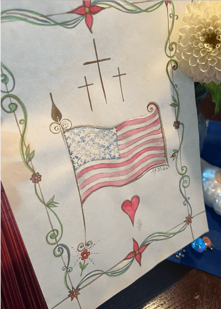 This art sketch seeks to preserve the essence of our July 4th 2024 Independence Day of the United States of America, celebrations and commemorations. I reflected upon the need for God’s protection and prayer for a nation’s founding, present and future celebrations, commemorations of the birth of a country, the limits of nation-state and shared futures of border regions, national and international countries. Thank you for your service!