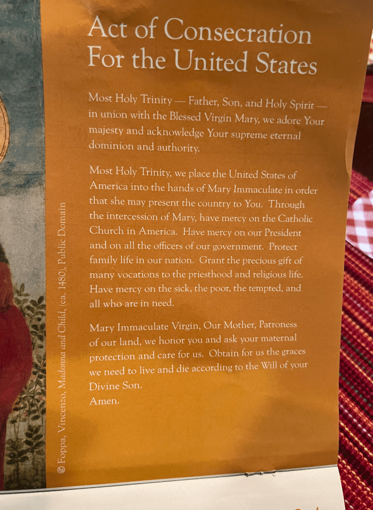 All art images are my own. The image of the Act of Consecration for the United States of America prayer is from the Basilica of the National Shrine of the Immaculate Conception 2024 Calendar, Washington DC., USA. Todas las imágenes de arte son mías. La imagen de la oración del Acto de Consagración de los Estados Unidos de América es del Calendario 2024 de la Basílica del Santuario Nacional de la Inmaculada Concepción, Washington DC, EE. UU.