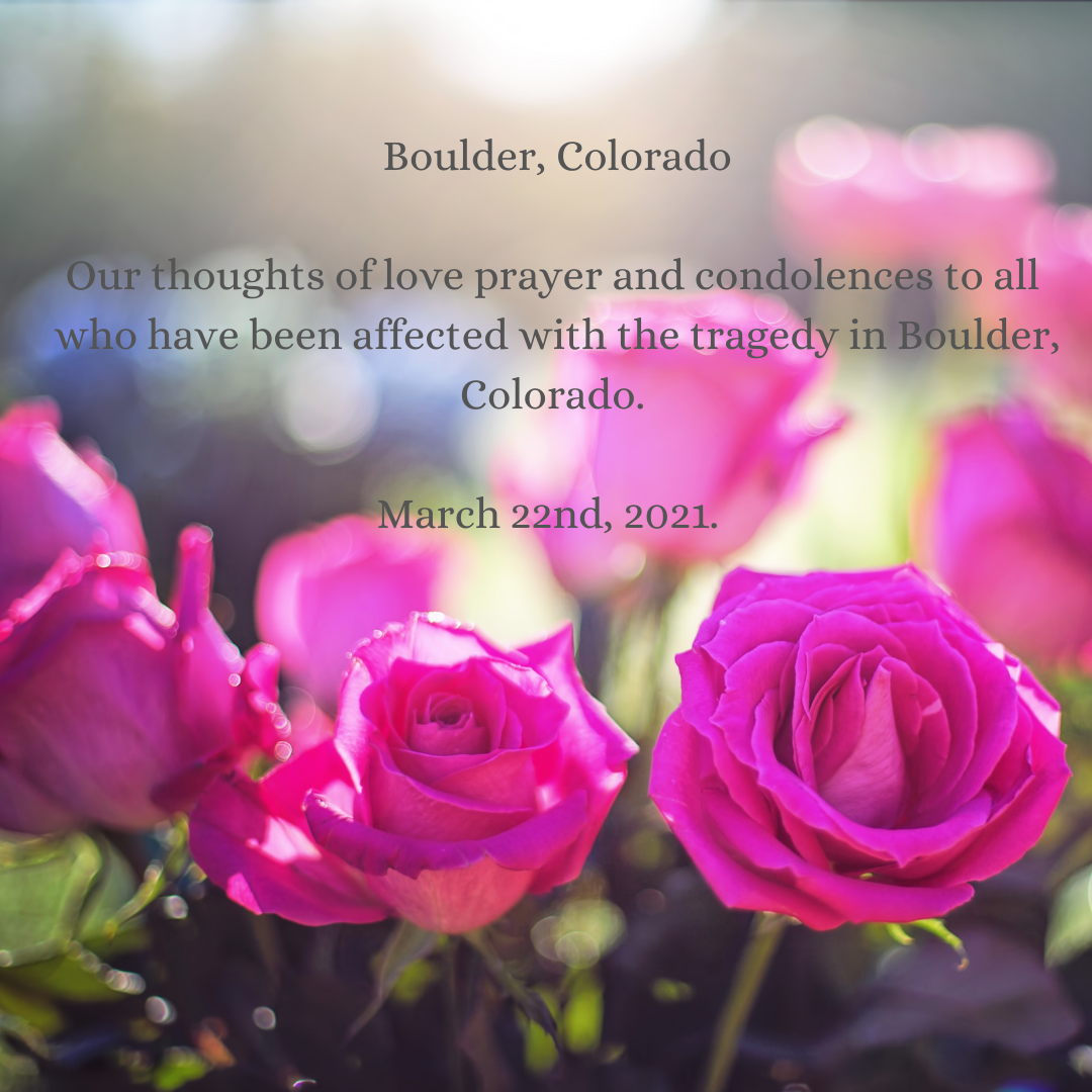 Our thoughts of love, prayer and condolences to family, friends, relatives and loved ones of all the victims who have tragically lost their lives with the mass shooting in Boulder, Colorado. It is deeply upsetting to hear of yet another tragedy that has struck. I wish for the strength of the community and all whoContinue reading “BOULDER STRONG!”