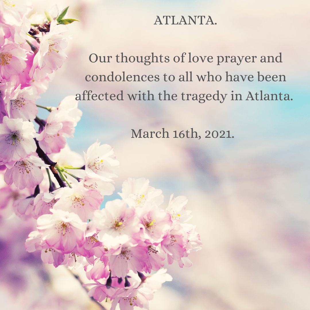 Our thoughts of love, prayer and condolences to family, friends, relatives, loved ones and the community within Atlanta who have suffered from the shootings that killed 8 individuals at 3 different massage parlours in Atlanta, Georgia. Our thoughts of sympathy and love to all during this difficult time. 🌺