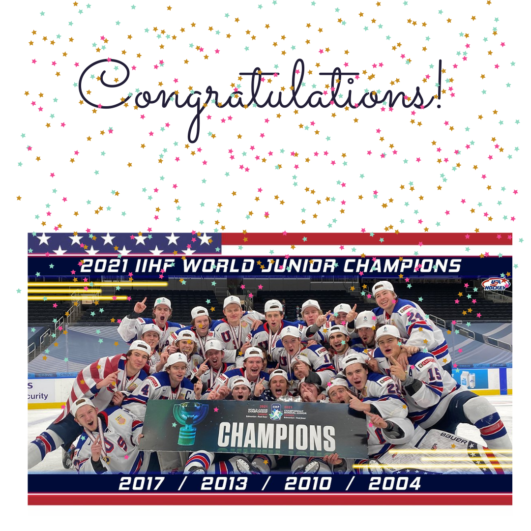 Congratulations to the USA World Juniors Ice Hockey team for your win as the 2021 world juniors International Hockey Federation (IIHF) champions! Congratulations for your gold medal win for the team and nation! We are really proud to celebrate our juniors!!!!! Image Link